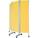Aus eloxiertem Aluminium-Designprofil Höhe 165 cm, 360° drehbaren Flügeln, blickdichte Scharniere mit staph CHEK Bespannun, leicht zu reinigen, einfach mit Schwamm und Haushaltsreiniger abwischen. Lieferbar in 5 Farben: weiß, beige, gelb, mint und hellblau (bitte geben Sie die gewünschte Farbe an). 3-flügelig, mittig auf Doppelquerfuß, zentrierter Flügel mit beidseitig um 360° drehbaren Flügeln, Flügelbreiten: 45/50/45 cm, Höhe 165 cm, offene Breite 140 cm.